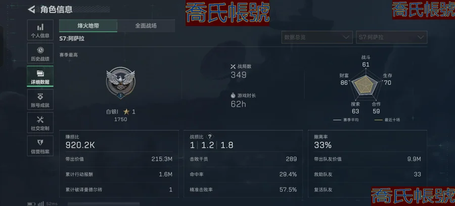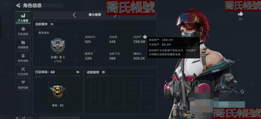 【OBSUUHK028042】總資產:258M,哈夫幣:2864W,武器皮膚:16,烽火60級:白銀,【安全箱】基礎安全箱;【特勤處等級】倉庫LV.9,靶場LV.7,訓練中心LV.7;【幹員皮膚】駭爪維什戴爾,露娜黑天際線,蠱能天使午夜郵差,深藍不破誓約,紅狼電鋸驚魂;【步槍皮膚】KC17突擊步槍-電鋸驚魂,CAR-15突擊步槍-阿米婭,M4A1突擊步槍-阿米婭,AK-12突擊步槍-特斯拉線圈,SG552突擊步槍-運動員,騰龍突擊步槍-撈點薯條,ASh-12戰鬥步槍-鵝鴨殺;【衝鋒槍皮膚】Vector衝鋒槍-能天使-午夜郵差,勇士衝鋒槍-能天使-午夜郵差,UZI衝鋒槍-特斯拉線圈,QCQ171衝鋒槍-鵝鴨殺;【狙擊步槍皮膚】R93狙擊步槍-維什戴爾,AWM狙擊步槍-撈點薯條;【輕機槍皮膚】M250通用機槍-騎士之心,QJB201輕機槍-鵝鴨殺;【手槍皮膚】93R-撈點薯條;(資訊源於賣家釋出,實際資訊以驗號為準)【QQ登入】總資產241m/聯動三姐妹/深藍不破/無題蜂醫/電鋸狼/體力負重滿級/