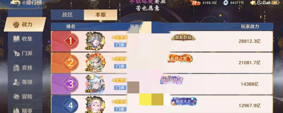 【ZRLHI2975】新服近兩億戰力,滿星楊戩,滿星橙將,資源戰靈多多,競技場前 30 排名,全服第一門派!詳情見圖【自己截圖】