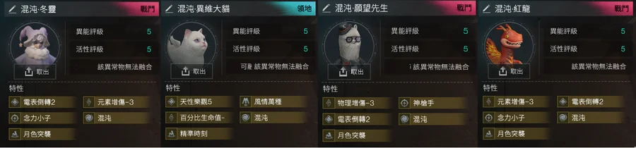 5-5 混沌.異維大貓5金 (天性樂觀5+風情萬種+精準時刻+混沌+生命值百分比-3)=1200t