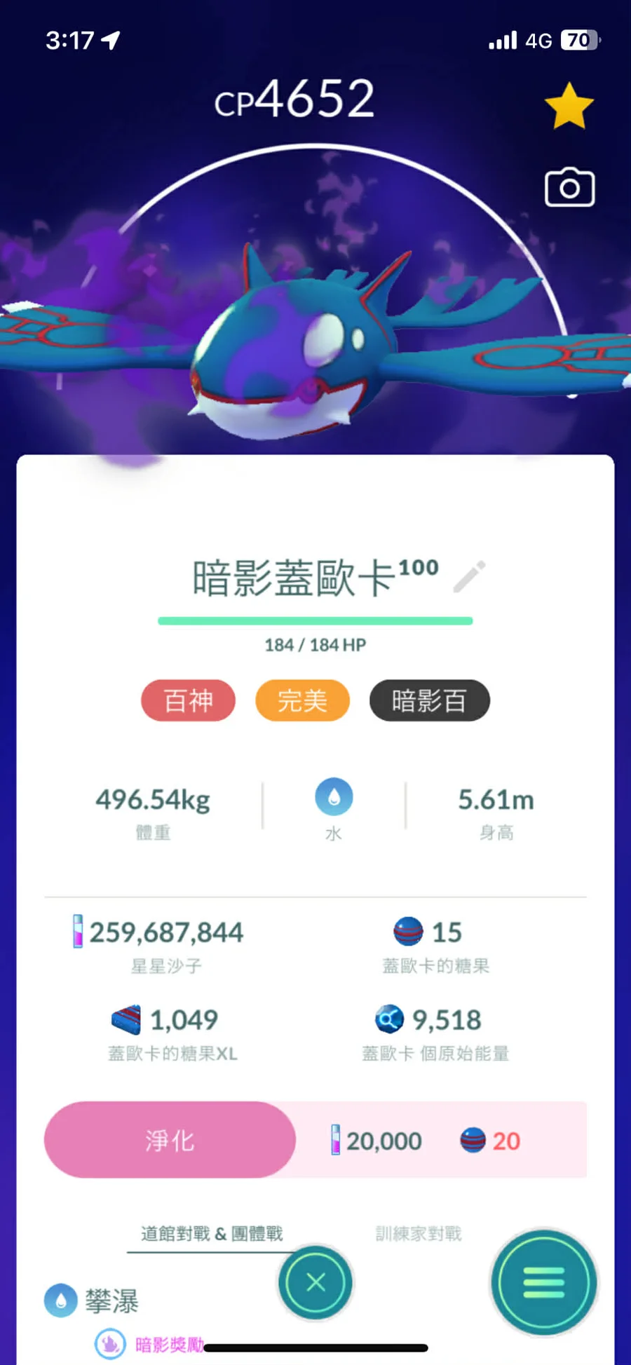 🔥70等藍隊 有稀有XXL(超進化後)倫敦黑烈 XXS百閃黑龍 百暗影超夢等
