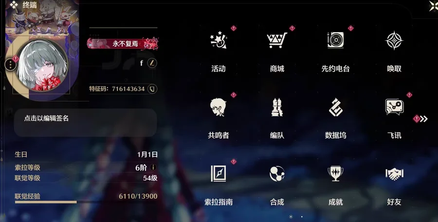 鳴潮國際服亞服,6+1弗洛洛,00琳奈,武器墊20抽,3.0版本未動,生日已設置1月1日,有張月卡還有10多天,自抽號出身介意勿擾,送微軟信箱。