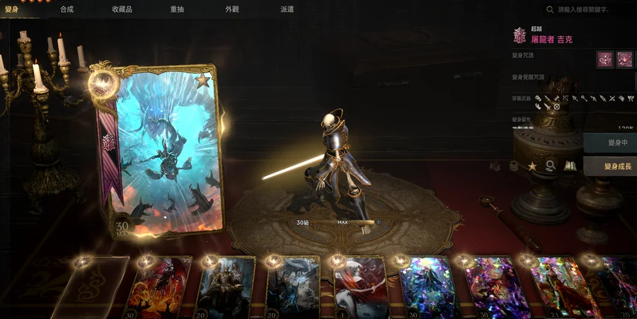 【商城裝備】:+8祝燦鬥士T、+8祝燦力肩甲、+7光龍面