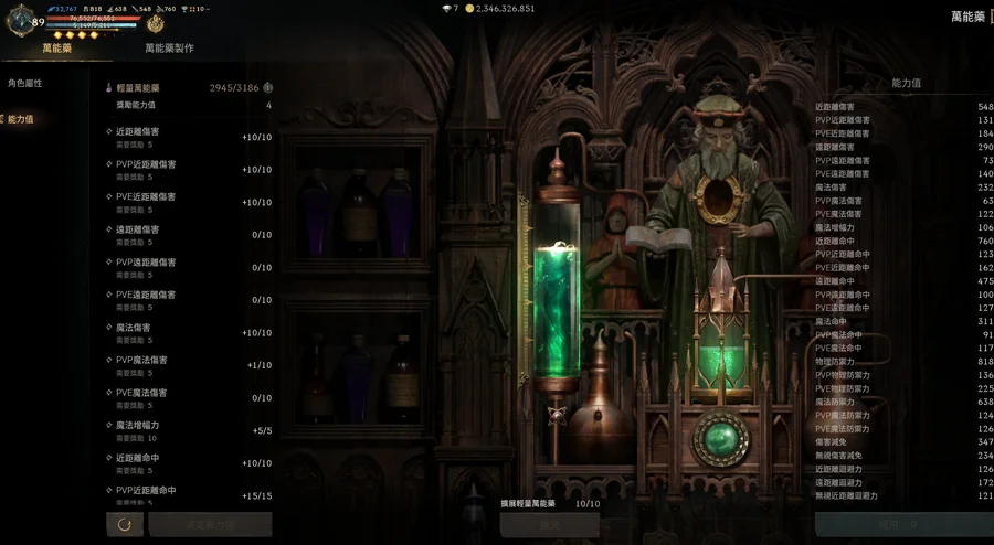 【萬能藥水】: 萬能藥30滿,輕量2947/3186 (擴10/10)