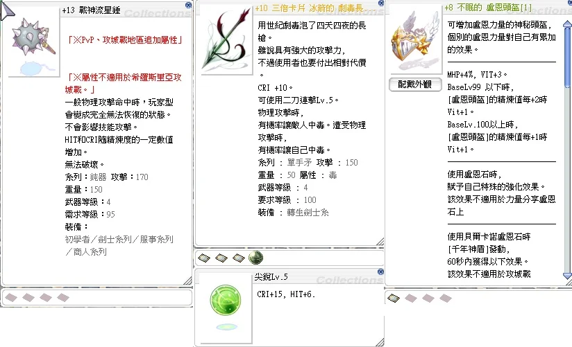 武器+13戰短尖55 +13無補錘 +10二刀凍毒槍
