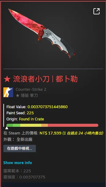 1.價格可參考BUFF網站,相同磨損,底價*4.4