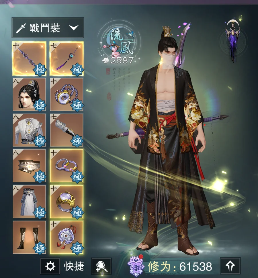 武器副武器傳世滿精煉:16顆4暴虐1神力外1神力屬1雁行