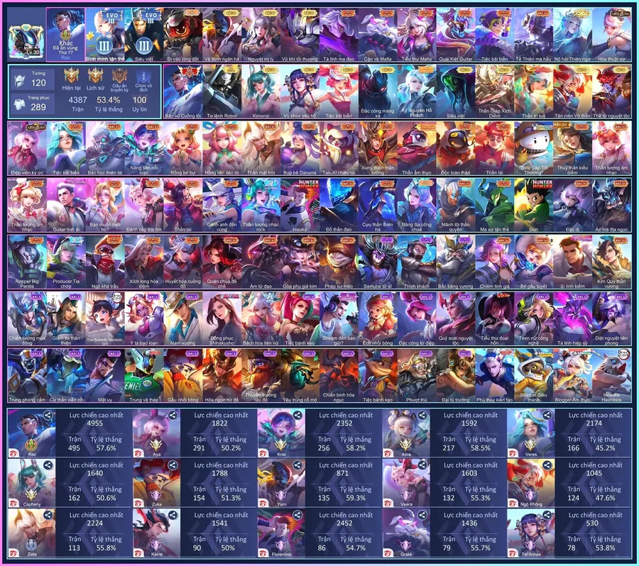 越南服傳說對決成品號 120英雄 289皮膚Raz永恒皮膚 限定稀有皮膚多 英雄皮膚齊全 賬號安全 可換綁信箱 其他看圖編號V1096909
