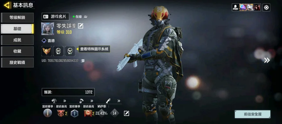【初始號】【310等】槍1紅2橙 fb帳未連結ganera 神話m13 巨擎渦輪262