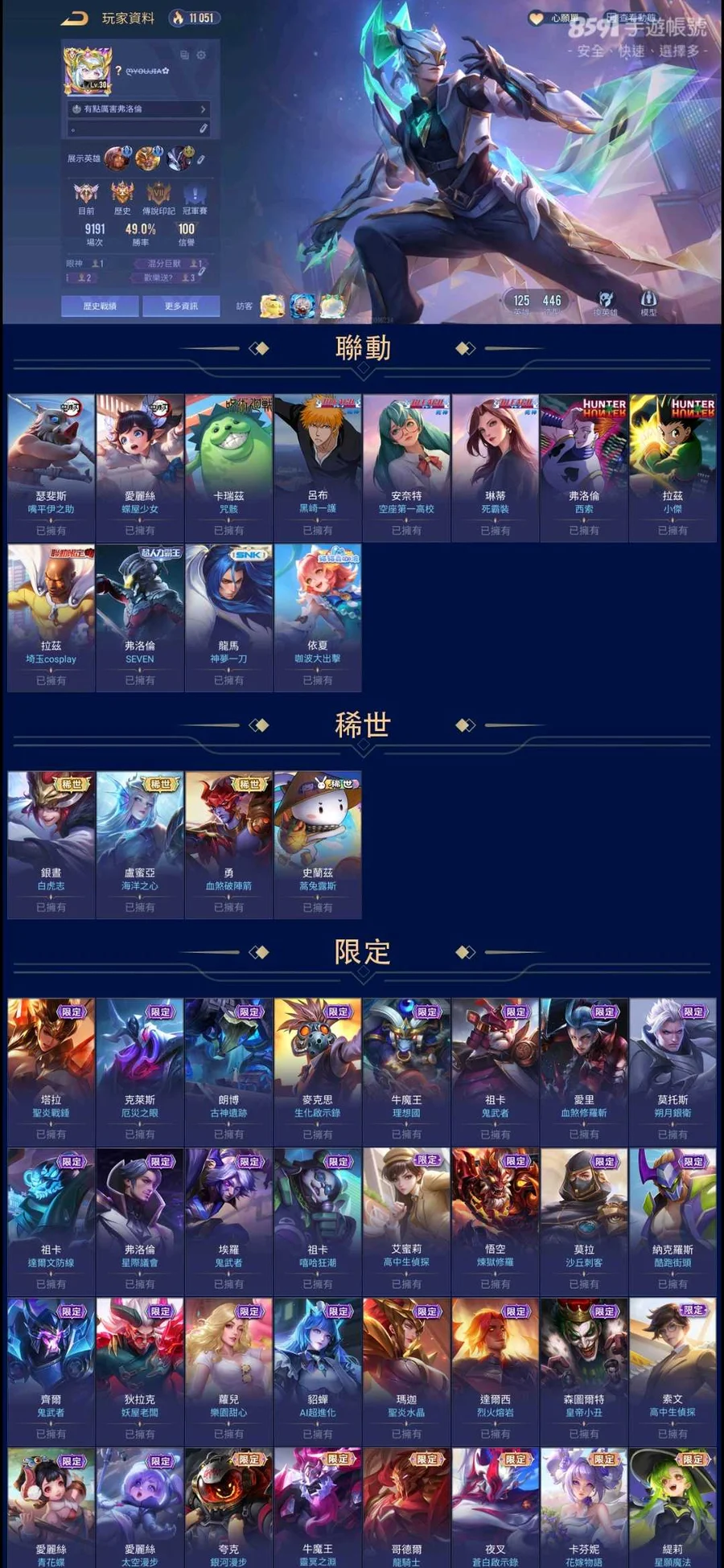 【Garena帳有綁定、璀璨傳說、V9、125英、446造】V9老帳 懶得練了 悟空納克皆覺醒五