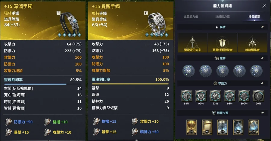 衣櫃拉滿,守護力拉滿,裝備詞條洗滿。