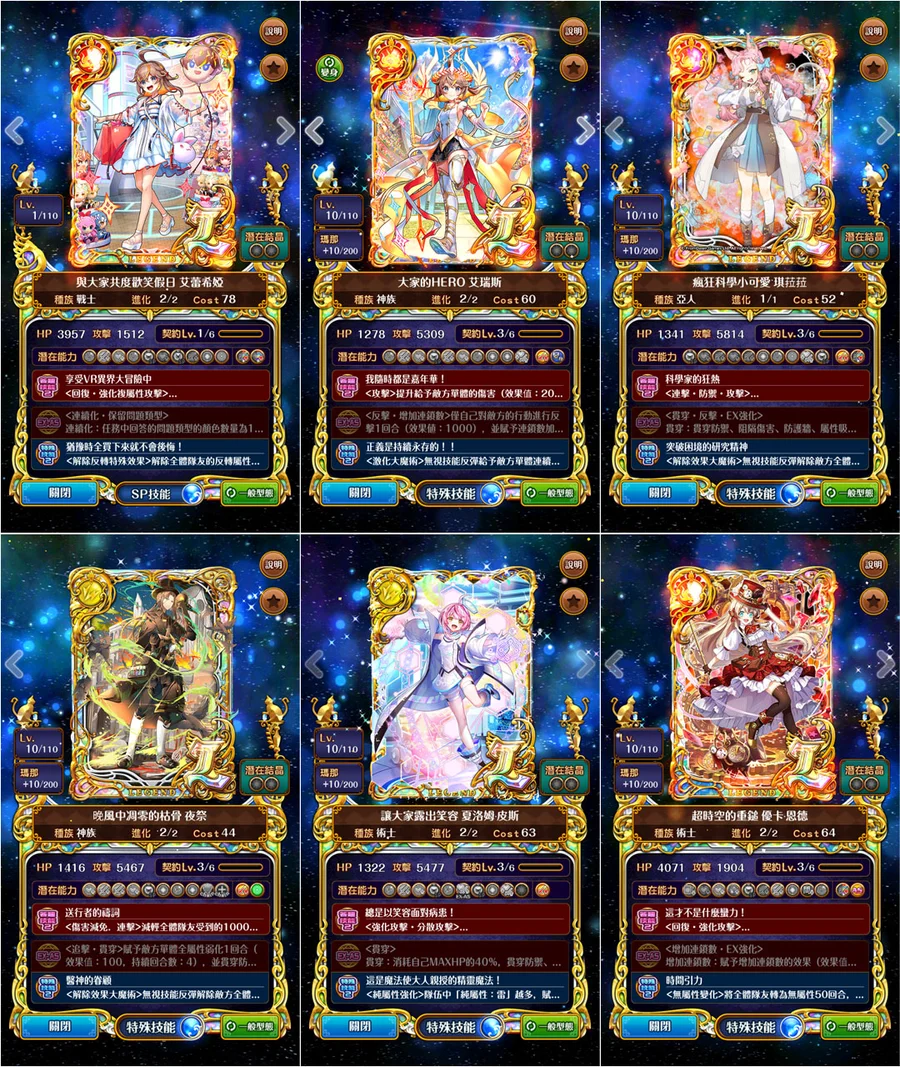 →實用潛能::全隊攻血+1800、防封印、防AS封SS封、防毒.弱化.死秒、1.2倍增攻、十周年紀念潛(可交互進化)、閰刃剪刀→[貫穿]