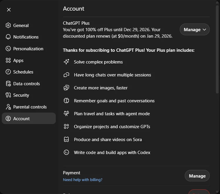 效期說明: 帳號開通時顯示效期為一年,但實際可用期限取決於 OpenAI 官方政策。若官方針對特殊權益進行調整或風控導致收回權限,非本賣場能控制,恕不補發或退款。