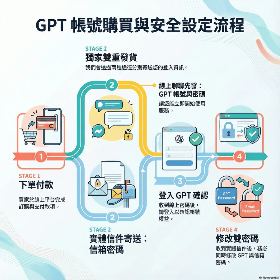 密碼保管: 建議取貨後立即修改信箱及 ChatGPT 密碼。若因買家未修改密碼或保管不當導致帳號損失,本賣場恕不負責。