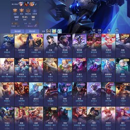 歷史璀璨傳說!!近全英雄兩百多造型!共115英雄227造型!勝率近52%!!共6次S傳說戰場印記!!常用奧義皆已齊全!