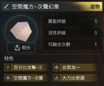 55 空間魔方-次聲幻象4金(次聲幻象+合眾唯一+大力出奇蹟+百分比攻擊-3) = 638t