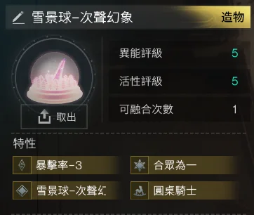 55 雪景球-次聲幻象 4金(次聲幻象+合眾唯一+圓桌騎士+暴擊率-3)=638t