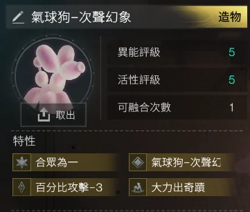 55 氣球狗-次聲幻象4金(次聲幻象+合眾唯一+大力出奇蹟+百分比攻擊-3) = 638t
