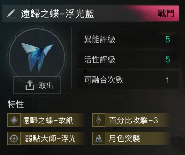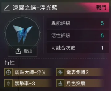 5-5 遠歸之蝶-浮光藍 4金 (浮光藍+電表倒轉2+月色突襲+暴擊率-3) = 531t