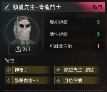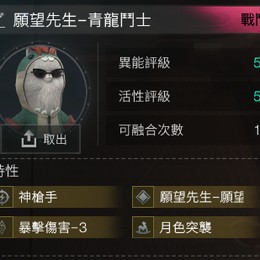 5-5 願望先生- 青龍鬥士 4金 (青龍鬥士+神槍手+ 月色突襲+暴擊傷害-3) = 800t