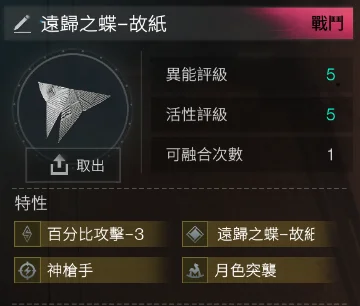 5-5遠歸之蝶-故紙 4金(故紙+神槍手+月色突襲+百分比攻擊-3) = 531t