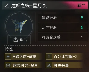 5-5遠歸之蝶-星月夜4金(星月夜+電表倒轉2+月色突襲+百分比攻擊-3)= 531t