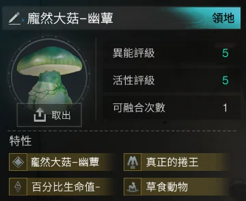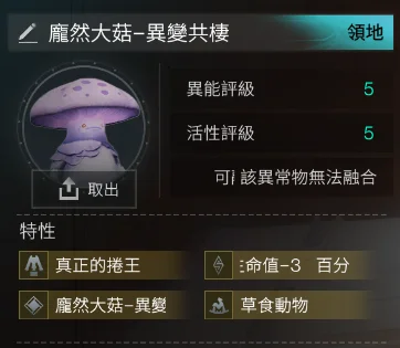5-5 龐然大菇-異變共棲 4金(異變共棲+真正的捲王+草食動物+百分比生命值-3) =744t (該異常物無法融合)