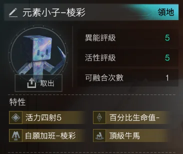 5-5 元素小子-稜彩 4金 (稜彩+活力四射5+頂級牛馬+生命值百分比-3)= 638t