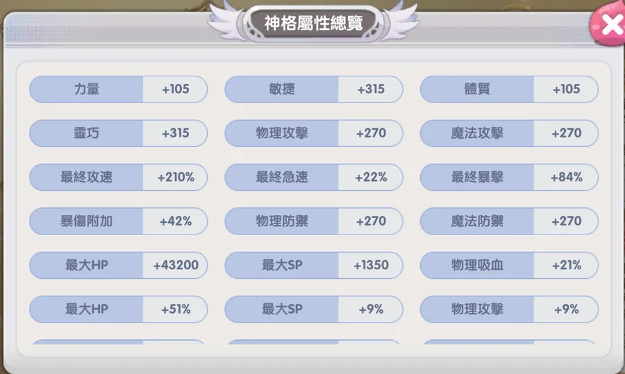 最終物傷190% 爆傷附加635% 火屬102% 大體207%