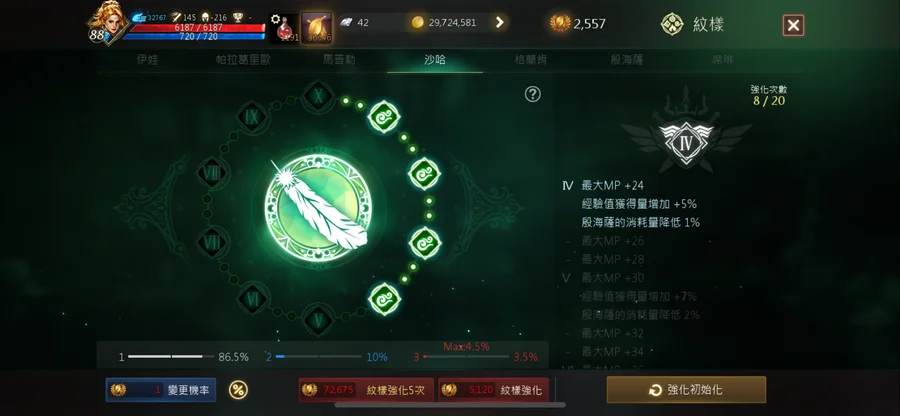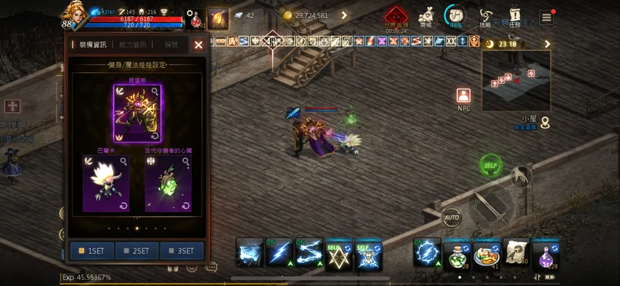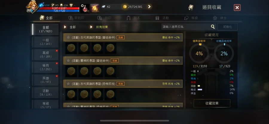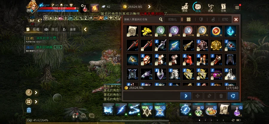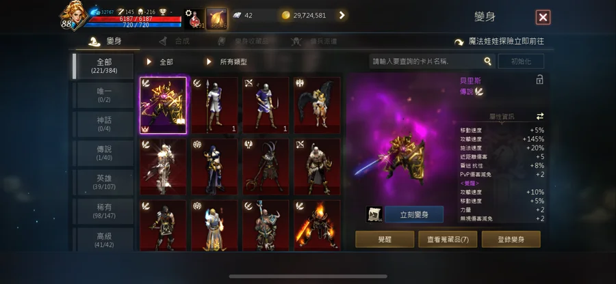 打幣機雷神88.45 攻擊145。技能2紫7紅。變身1紫。娃娃1紫。聖物3紫。名譽幣524萬。