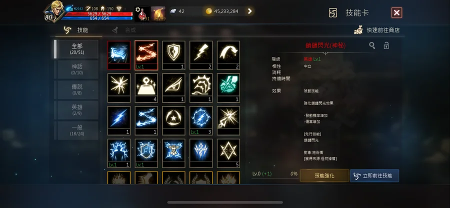 本尊紅技:鎖鏈閃光/雷電ㄧ閃/閃電攻擊/雷霆防護/雷電盔甲/落雷/超載充能。