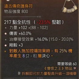 2太古 護身符 +3剛毅 傷害+60% 力量102