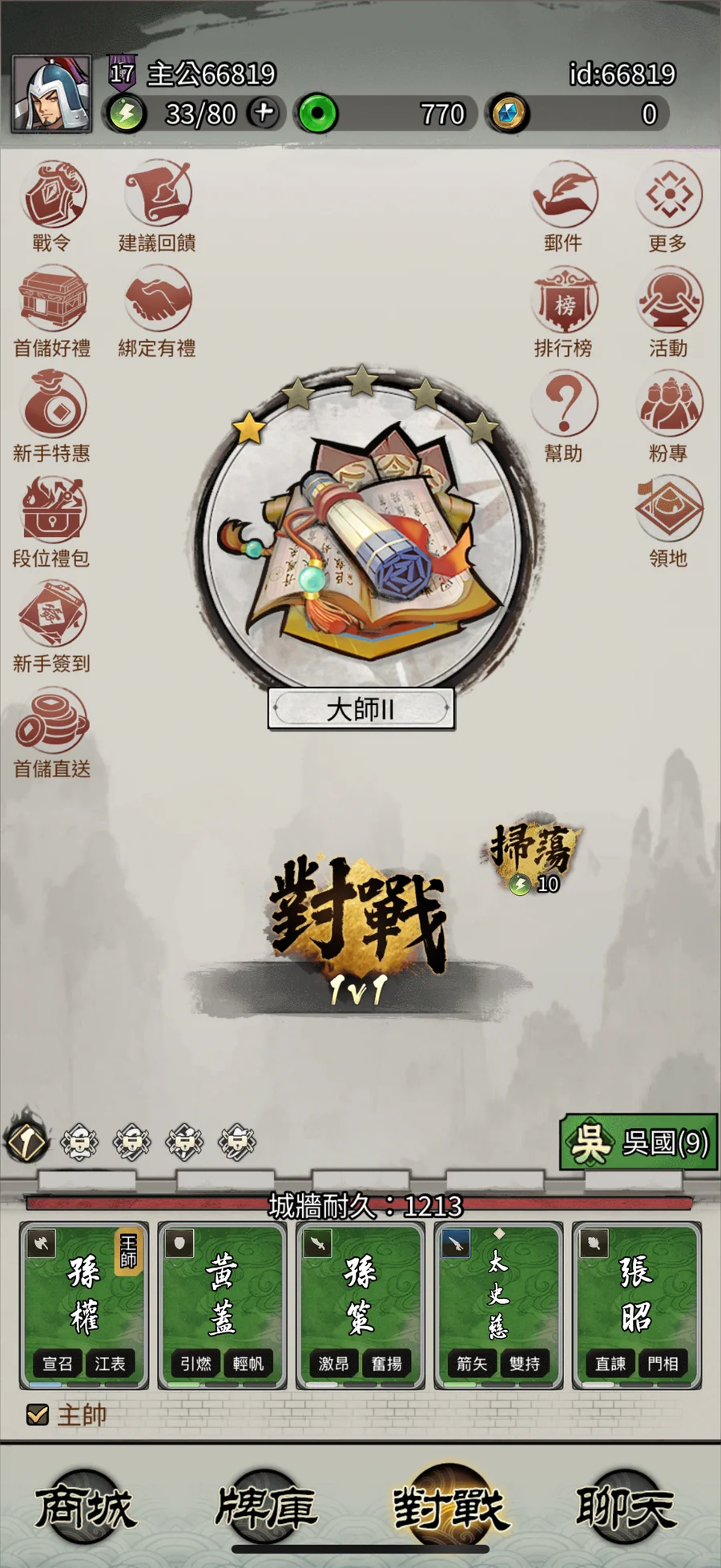 將領:孫權(王師)、黃蓋、孫策、太史慈(狼牙槍、搭箭兵書)、張昭