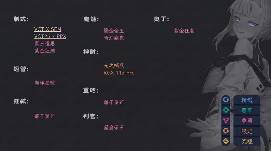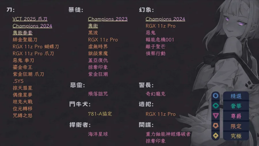 絕版:冠軍賽2023、冠軍賽2024套,VCT爪刀,奧術2.0套,2024 SEN戰隊,2025 PRX戰隊 ,萬聖節貓貓🎃