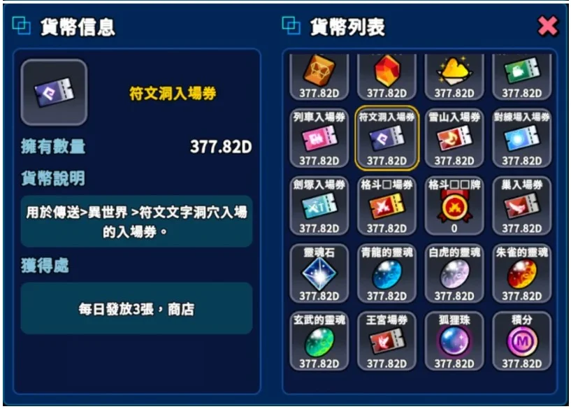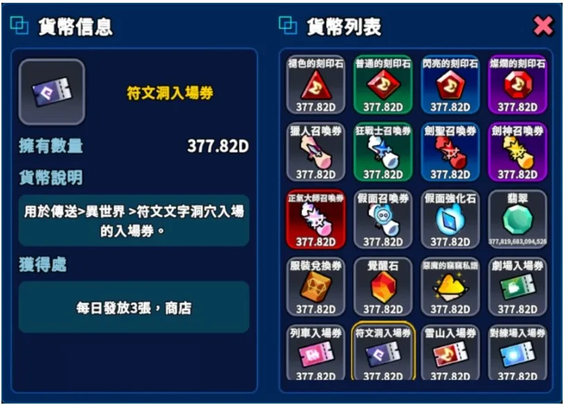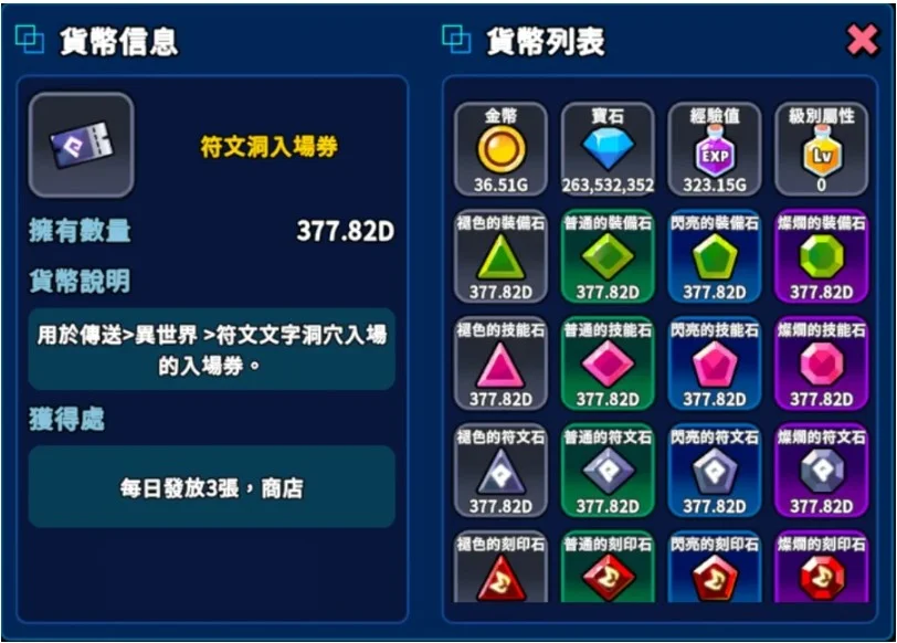 含鑽石、經驗、金幣、強化突破石、服裝券、入場券