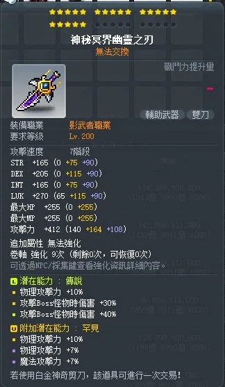 武器主職用潛:70%BOSS10%物攻(次頂職業主流主潛能)