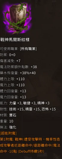 除了有隨機發動聖結界30秒功能,還有額外附魔戰神I,全職業都可裝備,練功打架都好用。