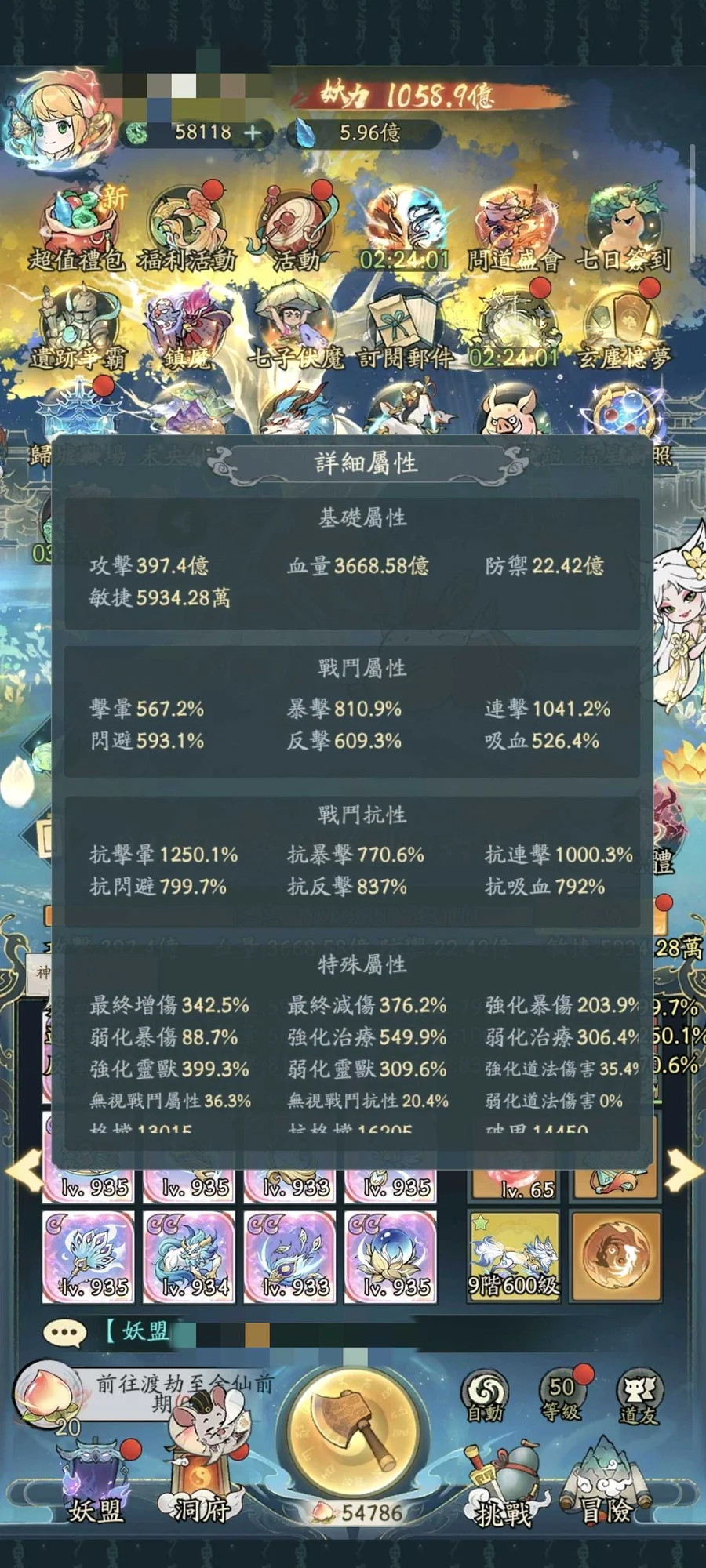 【935等】桃源20服 玄仙1065億 增傷342 減傷376 要的直下 戰力持續提升中