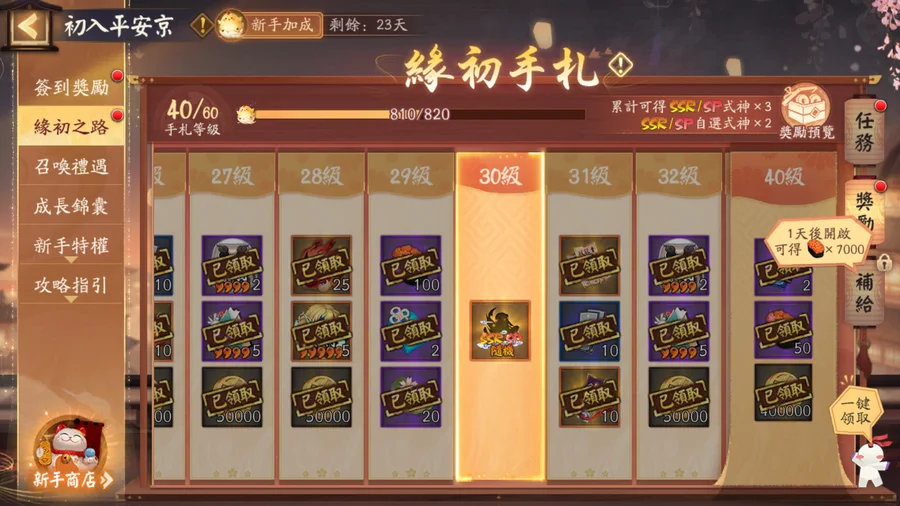 新手成長福利每日登入可得珍貴獎勵7/15限定自選SSR/SP未觸發