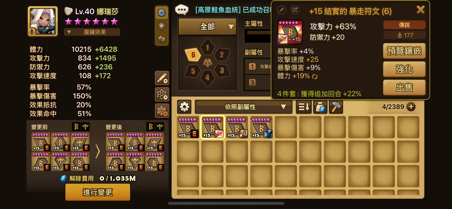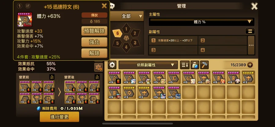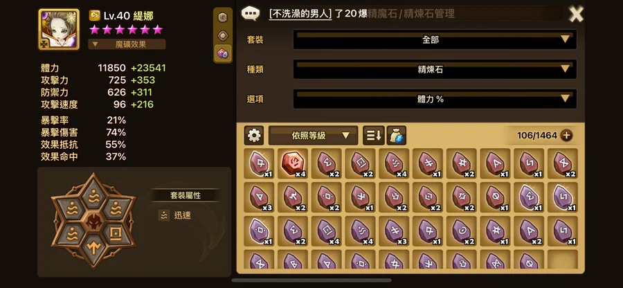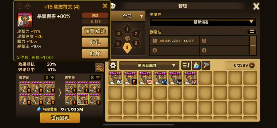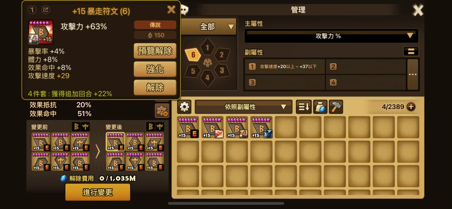 暴走:6號 攻% 1顆24+5