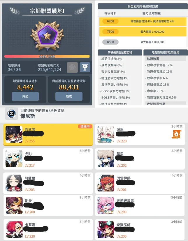 公會個人技能大傷滿