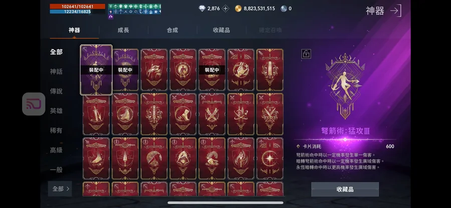 弩紫技:紅7階、1-5階滿+帝國1、2