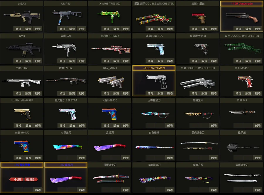 【近二百樂透、可改手機】天照菲尼戰爭M、瘟疫月華原木SV、多款XM8、七彩武士刀