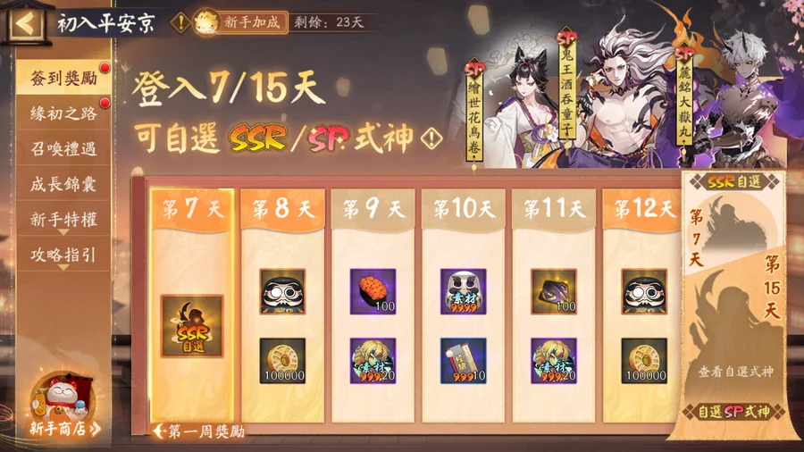 新手成長福利每日登入可得珍貴獎勵7/15限定自選SSR/SP未觸發