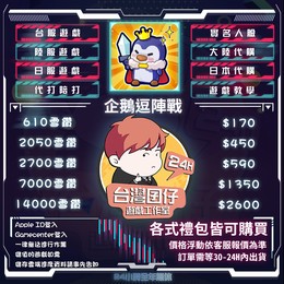 6️台灣囝仔台陸手遊代儲純粹為協助代儲服務,僅收取服務費,無賺取額外差價。