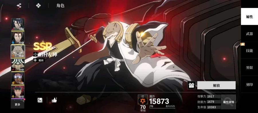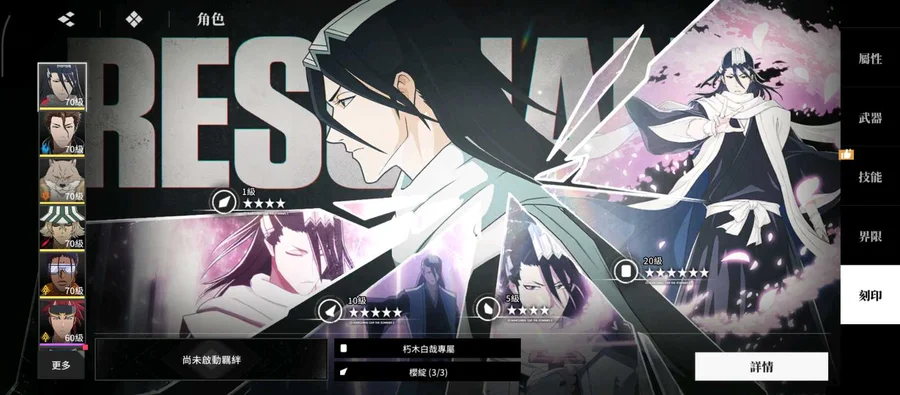 【55等】SSR朽木白哉/藍染突+1/浦原喜助/狛村左陣/東仙要/SSR專屬武器+刻印