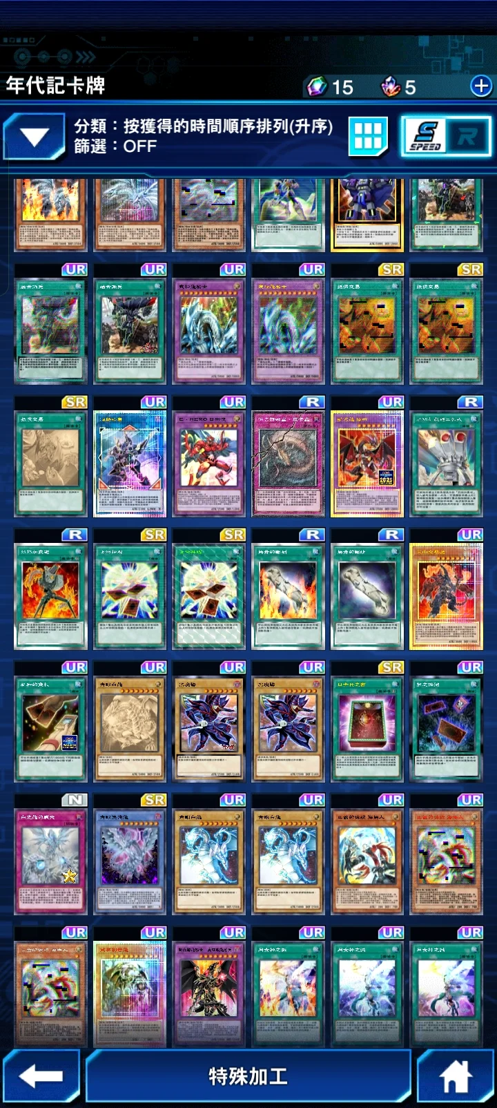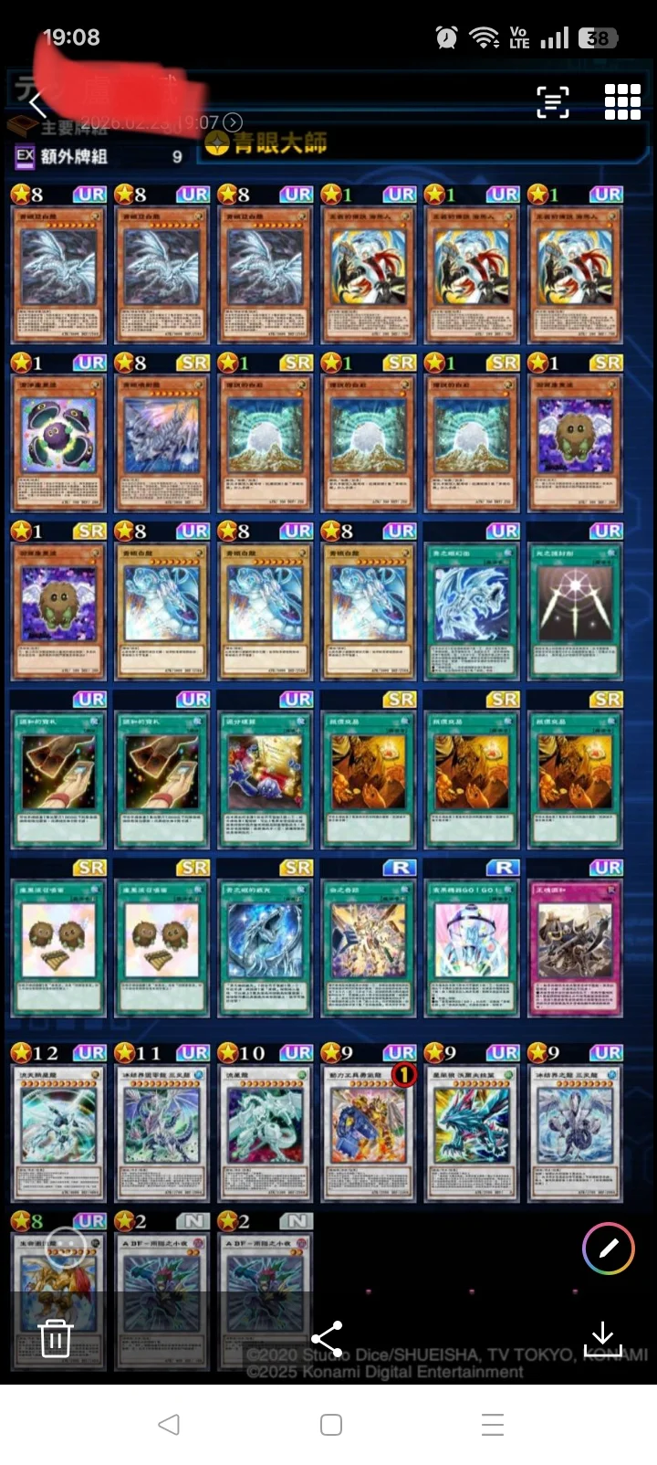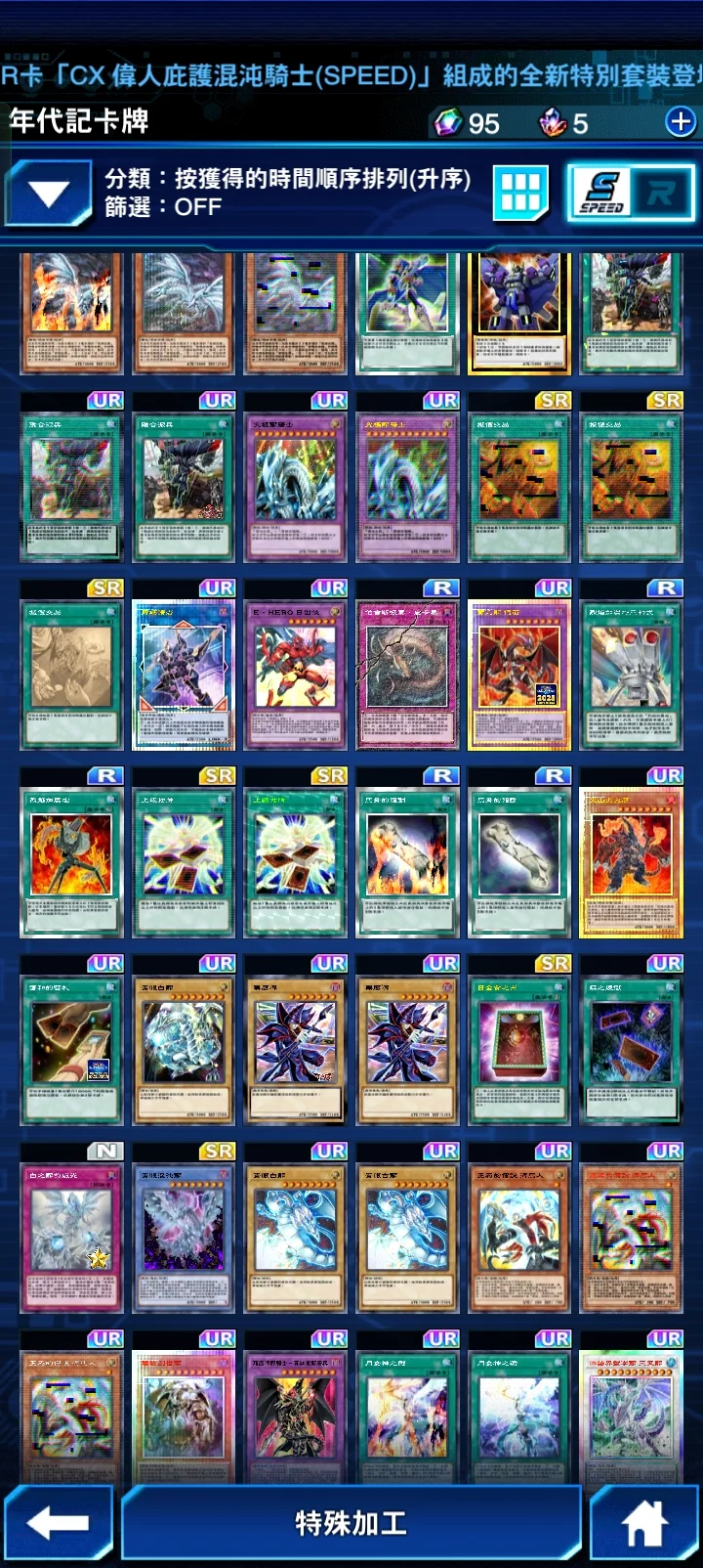真紅眼龍騎兵牌組 巨大戰艦牌組等。限定卡-無限泡影x2。新卡月女神之戮x3 。屋敷童子x1。新動畫黑魔導女孩x2(未加工)。動畫青眼白龍x2(已加工)。動畫青眼白龍(未加工)x1。動畫黑魔導x2(已加工)。