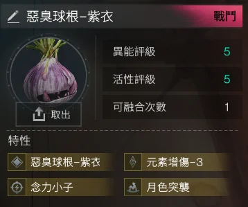 5-5 4金 惡臭球根-紫衣(紫衣+念力小子+月色突襲+元素增傷-3) = 531t (融合次數1)