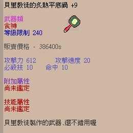 貝里教徒的炙熱平底鍋N+9 =600T/把 未鑑【食神】