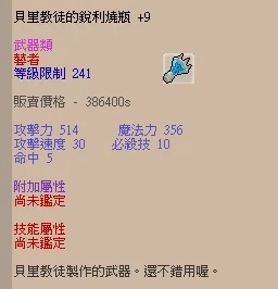 貝里教徒的銳利燒瓶XG+12 =4000T/把 攻20魔10速10【藝者】