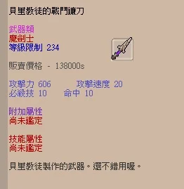 貝里教徒的戰鬥鐮刀N+0 =400T/把 未鑑【魔劍士】